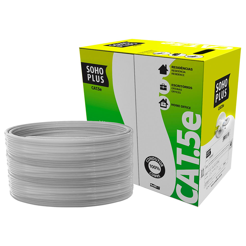 CABO REDE LAN FURUKAWA SOHOPLUS CAT5E U/UTP CMX CINZACLARO CERTIFICADO CX 305M