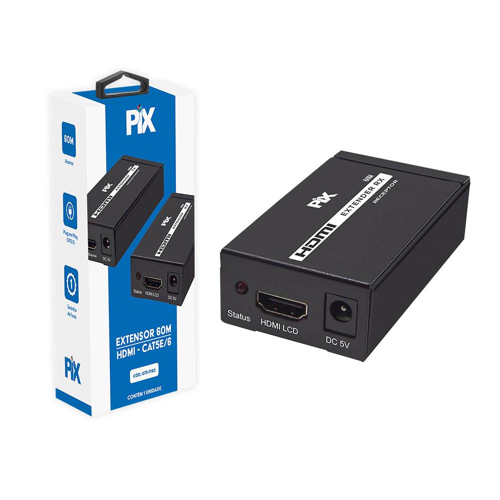 EXTENSOR HDMI CAT5E/6 1080P 60 METROS PIX – Expanda Conexões HDMI com Máxima Qualidade