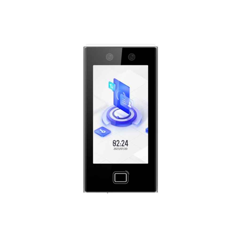 Terminal de Reconhecimento Facial,Video porteiro - 20.000 Faces; - 10.000 Biometrias; - 5.000 Controle Remotos Anti Clonagem (requer KAB672WB); - 20.000 Cartoes Mifare 13,56Mhz; - Tela LCD sensivel ao toque de 7 polegadas; - LED Superior de indicacao de resultado de autenticacao; - Abertura de 2 Portoes com Intertravamento (requer modulo de seguranca); - Distancia valida para reconhecimento facial: 0.3m a 3 m; - Deteccao 3D para prevenir fraude facial(contra foto e entre os outros); - Suporta TCP / IP, WiFi, DC 12V / 2A.